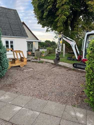 Vi tilbyder komplette løsninger fra A-Z ved etablering af indkørsler, terrasser, gangstier, støttemure mv., og er altid åbne for en god dialog med nye indspark til det givne projekt.