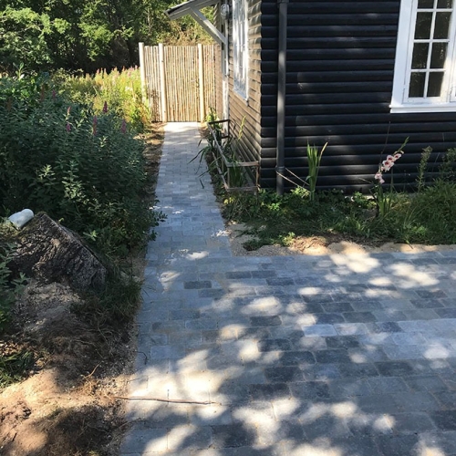 En lille samling af fire mindre flisebelægninger på Sjælland.