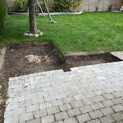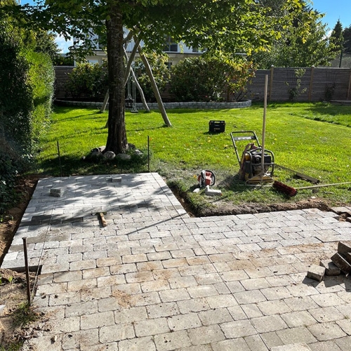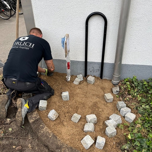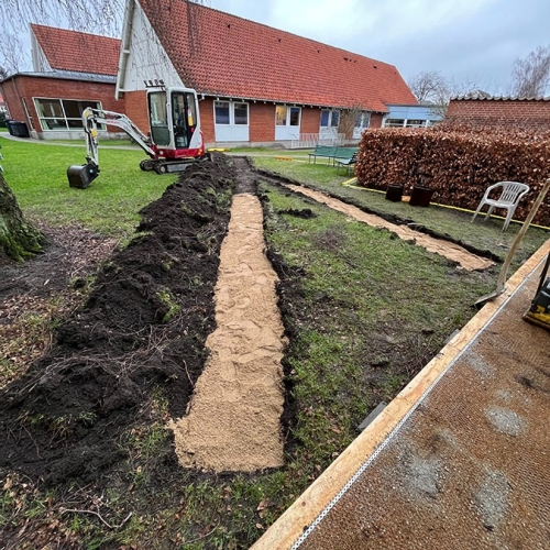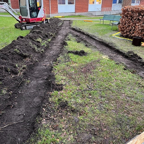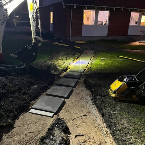 Her en lille samling, bestående af en midlertidig gangsti for Københavns Kommune, en terrasseudvidning, samt en lille brolægningsopgave for Poul Sejr Nielsen A/S