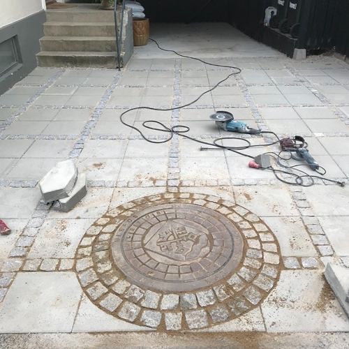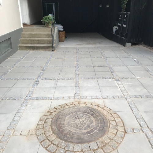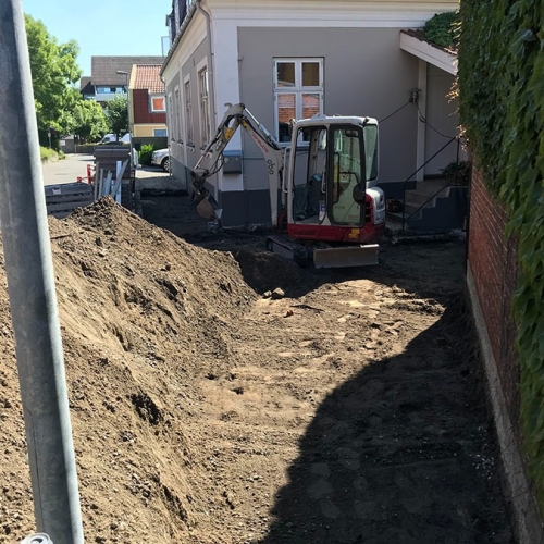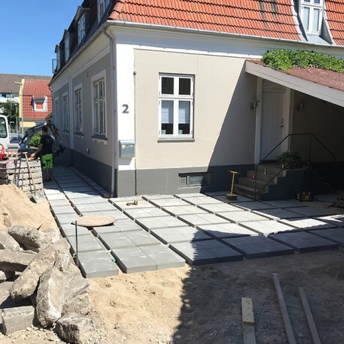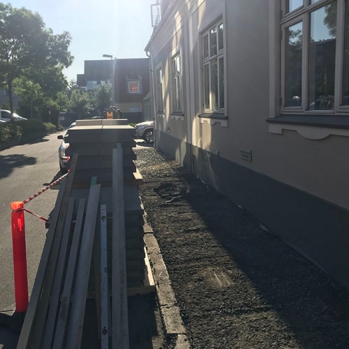 Her en lille samling, bestående af en midlertidig gangsti for Københavns Kommune, en terrasseudvidning, samt en lille brolægningsopgave for Poul Sejr Nielsen A/S